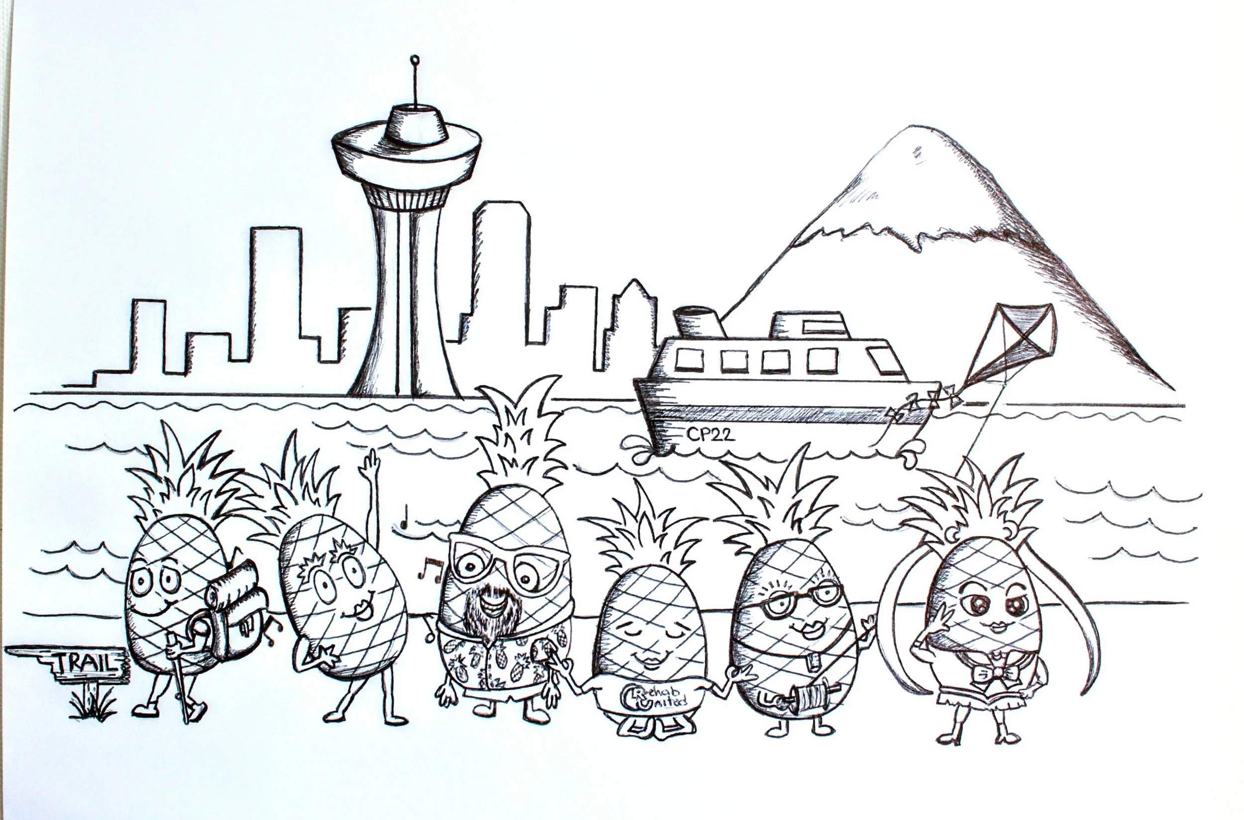 For this I was hired to come up with pineapple characters fitting their 6 employees interest. (ie. one loved kits, one loved Sailor Moon and so on.) But she only gave me like 2 or 3 words to describe them. She loved them!